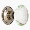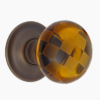 Highly decorative solid glass door knobs. The classical uniformed squares add both a visual and tactile experience to the door furniture, contrasting frosted and shiny glass.