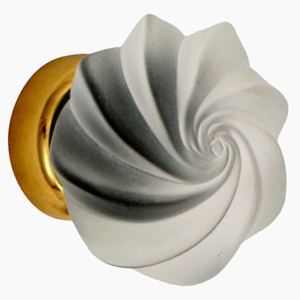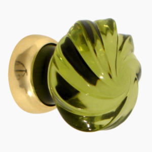 Highly decorative solid glass whirl cupboard knobs. Extremely elegant folds of glass in a spiral arrangement. Truly beautiful design.