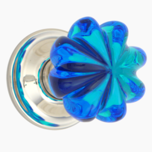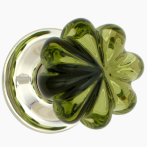Pretty solid glass daisy door knobs. Highly decorative and soft to the touch, perfect turning door handle. Sold in pairs.