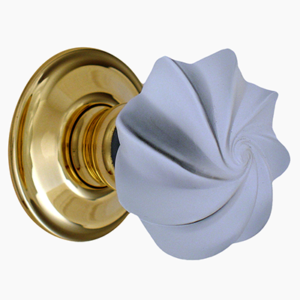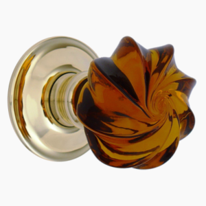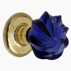 Classical solid glass whirl door knobs. Extremely elegant folds of glass in a spiral arrangement. Visually impressive and beautiful to turn.