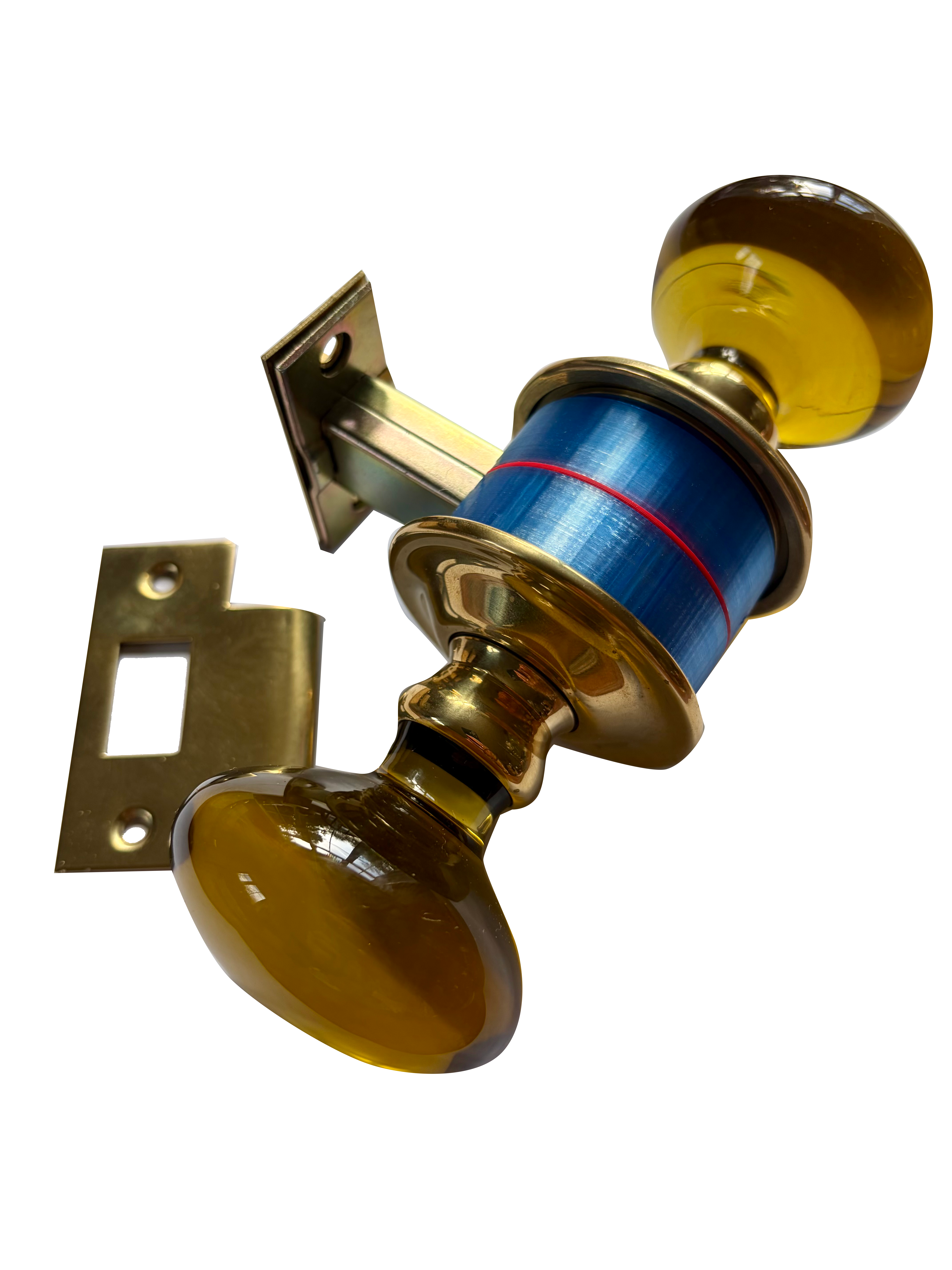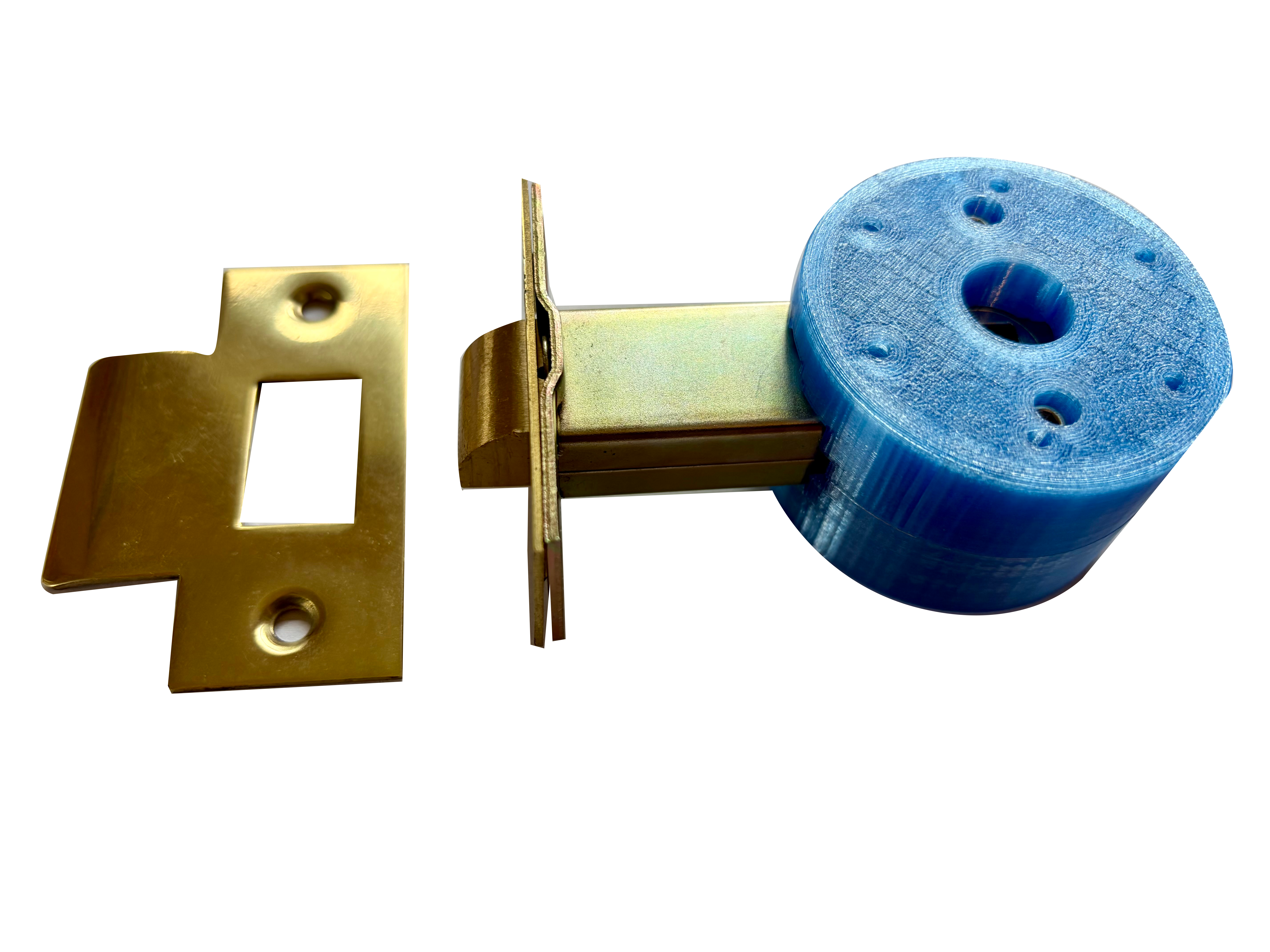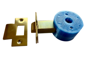 For American specification pre-bored doors for compatibility with Merlin Glass Door knob furniture. Locates within 54mm bore, has 6 screw holes for backing plate, centre hole for spindle and fitting side screw. For standard 44mm (1 ¾”) thickness of door, compatible with tubular latch and spindle. Tubular latch 80mm latch with 60mm basket (2 3/8”) Architectural quality UK manufactured by Imperial locks and latches made to BS EN 1634-1. Spindle size 8mm (5/16”)